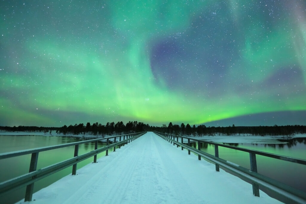 months offering the best viewing conditions. Far from the light pollution of big cities, Levi provides a perfect vantage point to witness these green and violet ribbons dance across the sky.